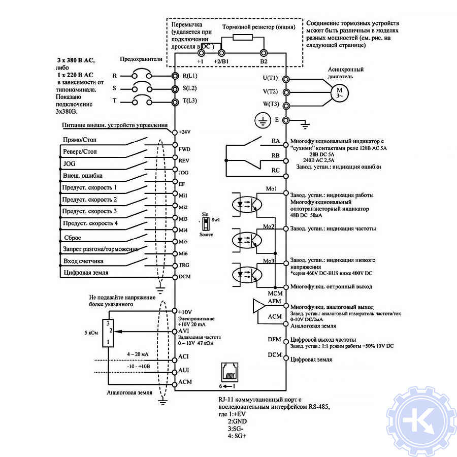 Схема подключения частотного преобразователя Delta VFD-EL |