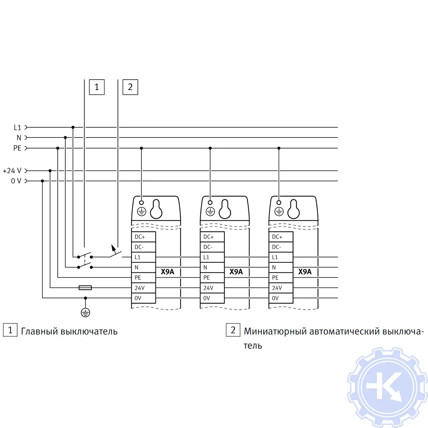 Схема подключения, 1-фазное подключение к сети сервопривода FESTO |