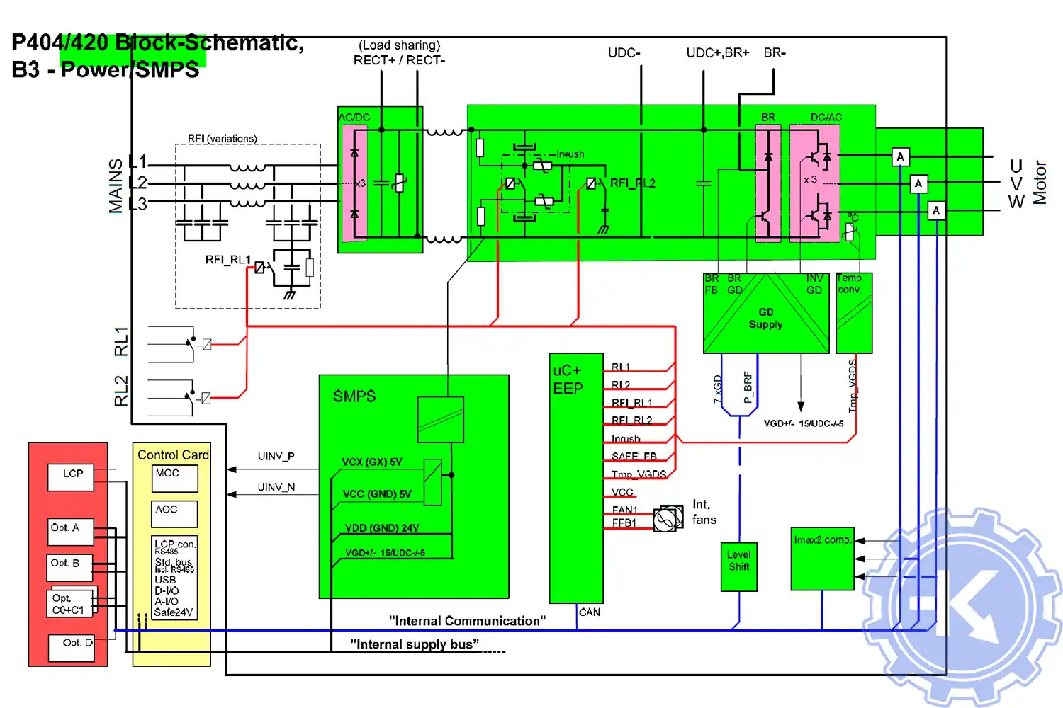 Ремонт частотного преобразователя Grundfos, впрочем, как и ремонт частотников других производителей имеет ряд особенностей в силу своего конструктива. Частотные преобразователи, точнее их начинка делятся на две части: