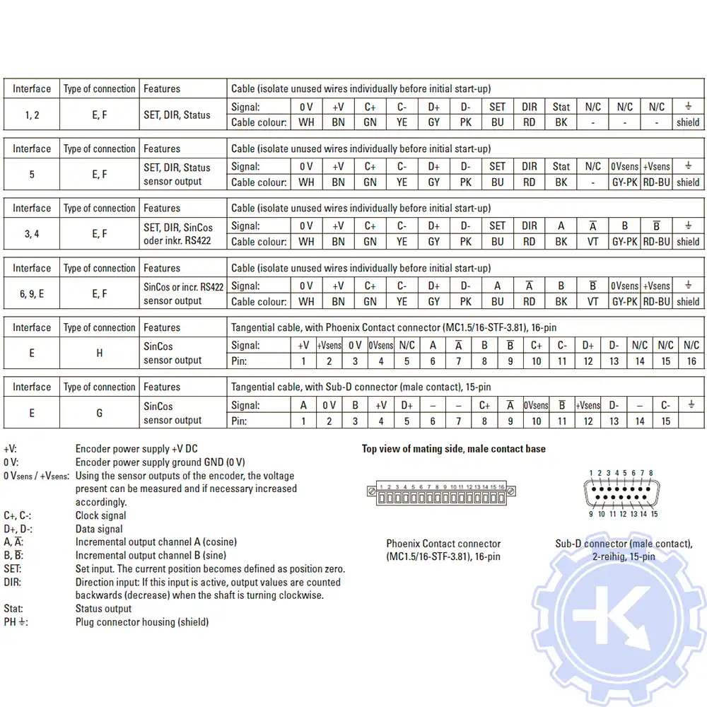 | Распиновка кодеров KUBLER серии Sendix 5834. |