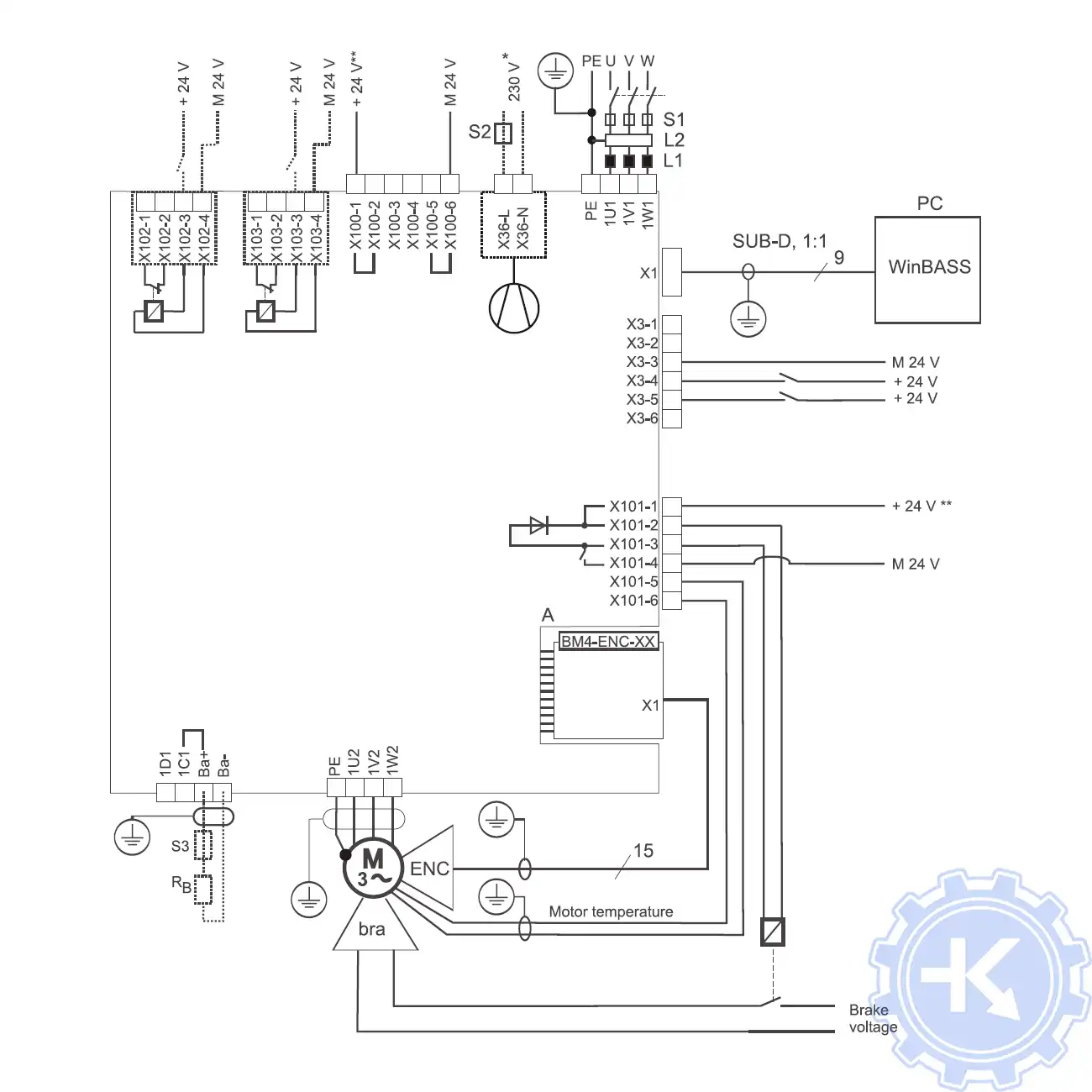 В некоторых случает может понадобится схема подключения сервоприводов, ниже мы показаны схемы сервопривода BAUMULLER b maxx.