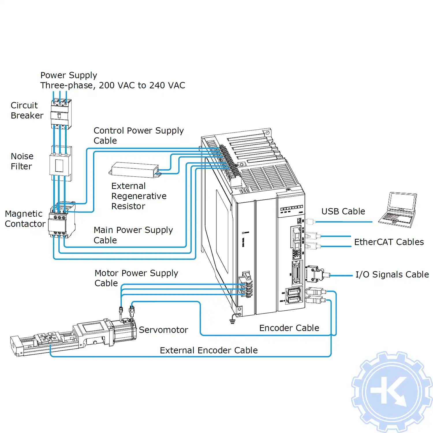 Схема подключения сервопривода Estun Summa к трехфазной сети |