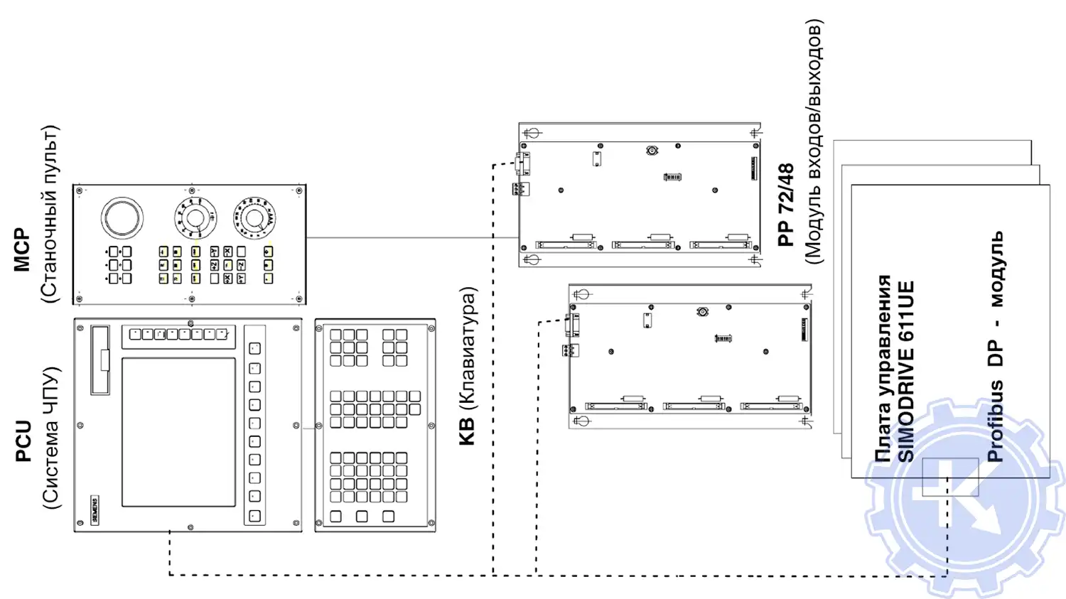 - PCU (Panel Control Unit): модуль управления используется максимально для четырех осей и одного шпинделя, оснащен графическим дисплеем, функциональными кнопками и вставным блоком NC-карты.