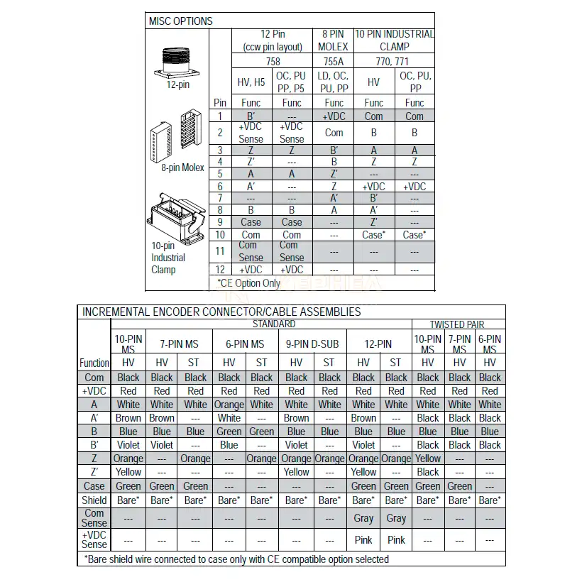 | Таблицы подключения инкрементального энкодера | |