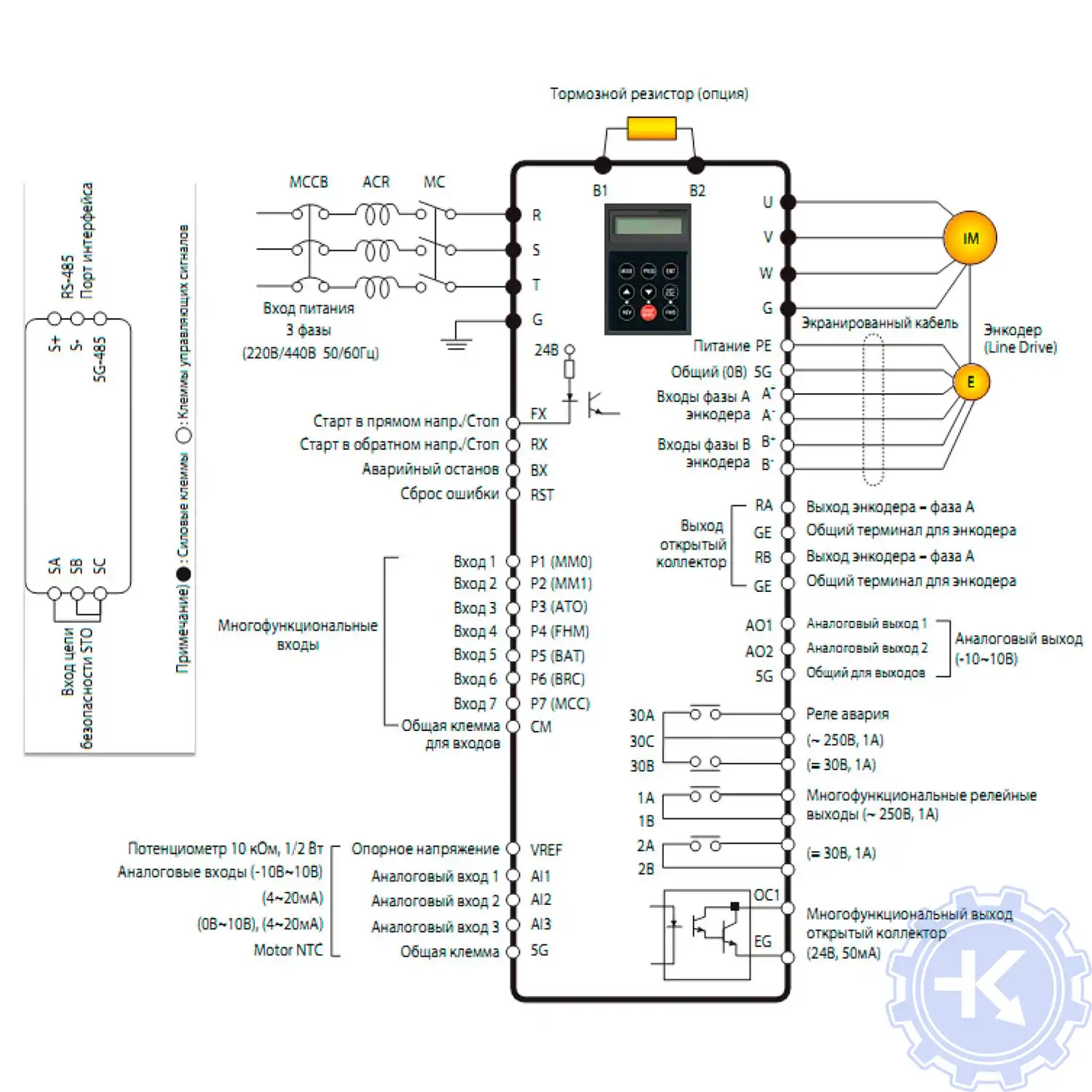 Другие схемы подключений частотных преобразователей LS вы найдете в руководстве пользователя.