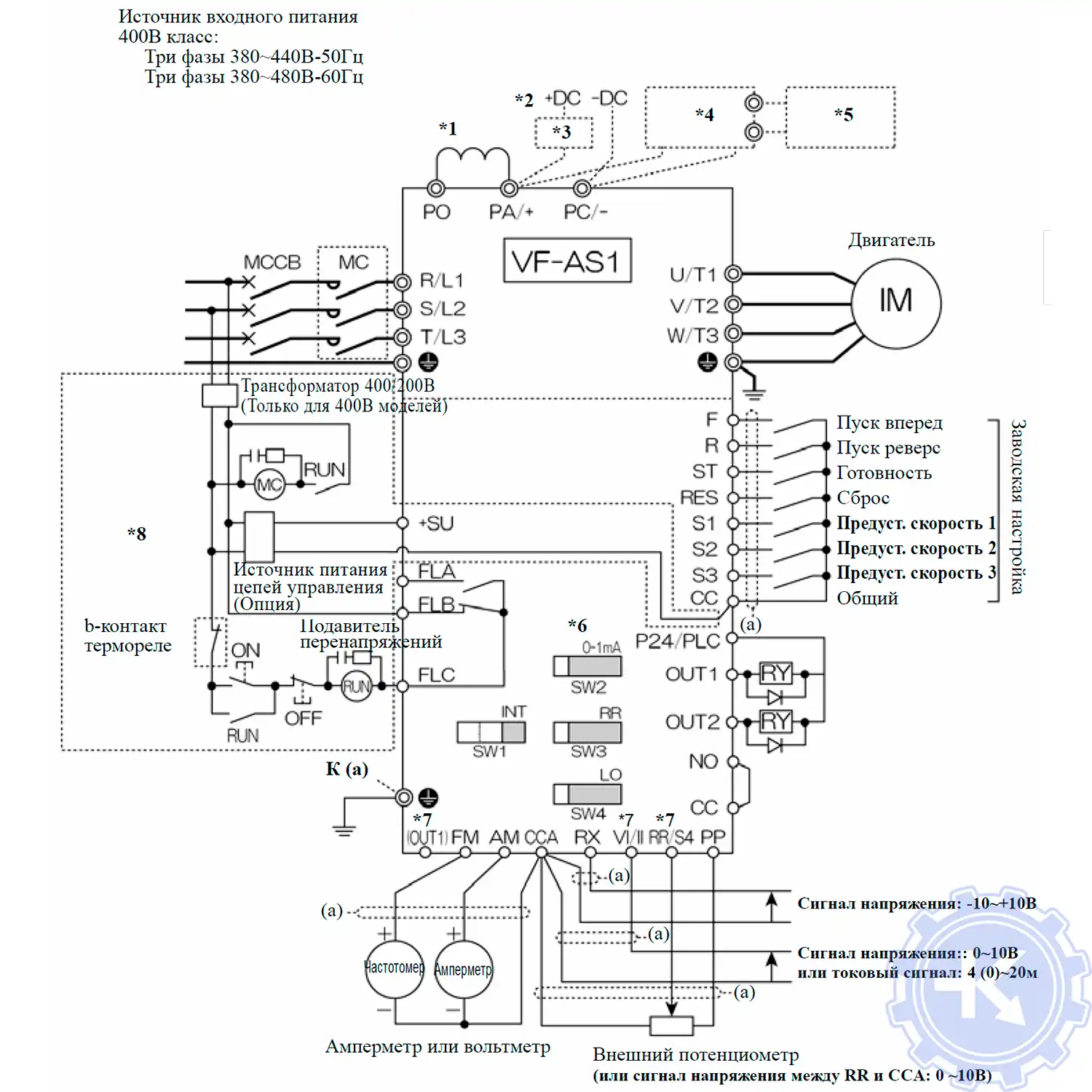 Схемы подключений частотных преобразователей TOSHIBA VF-AS1
