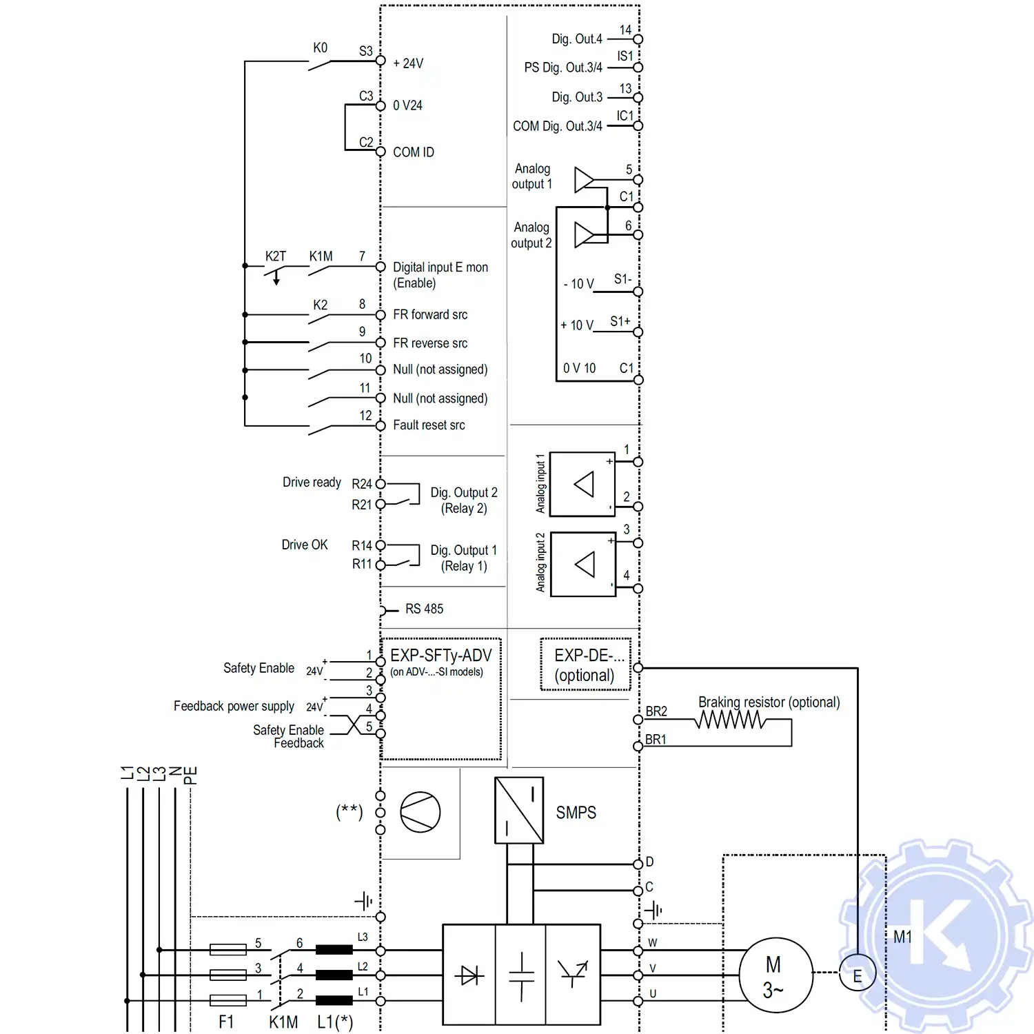 Другие схемы частотных преобразователей GEFRAN вы найдете в руководстве пользователя.