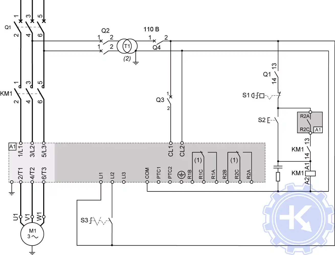 Схемы Altistart 22 в цепях питания двигателя