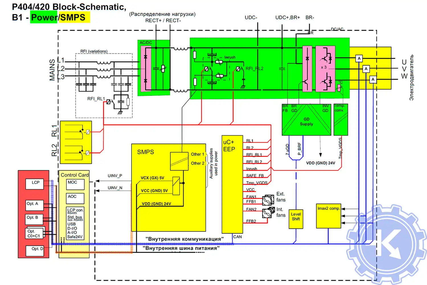 Ремонт частотного преобразователя Grundfos, впрочем, как и ремонт частотников других производителей имеет ряд особенностей в силу своего конструктива. Частотные преобразователи, точнее их начинка делятся на две части: