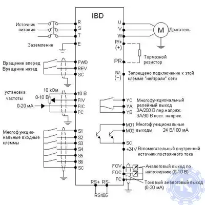Схема подключения частотного преобразователя INNOVERT-ISD |