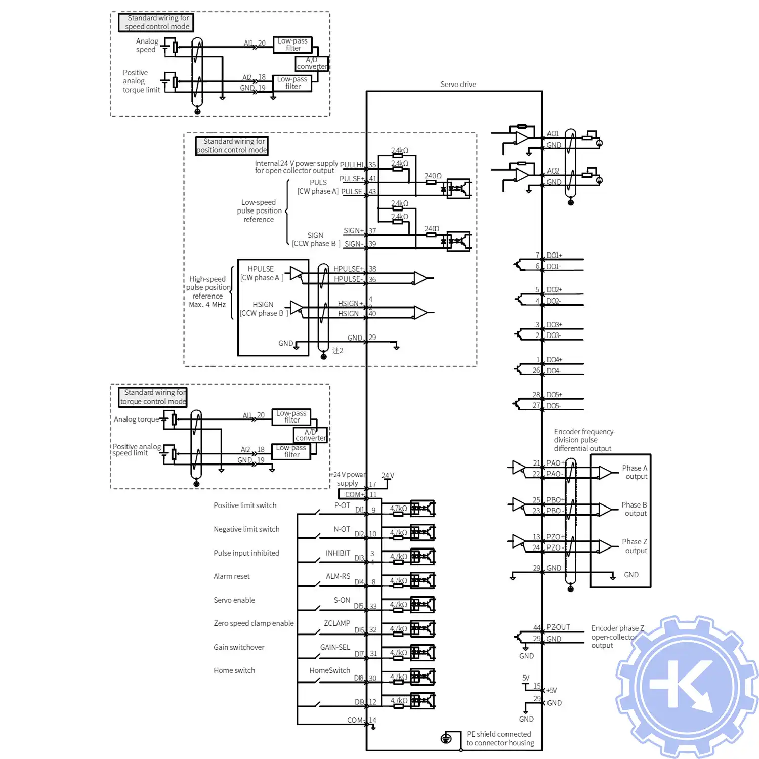 В некоторых случает может понадобится схема подключения сервоприводов, ниже мы показаны блок схемы подключения сервоприводов INOVANCE.