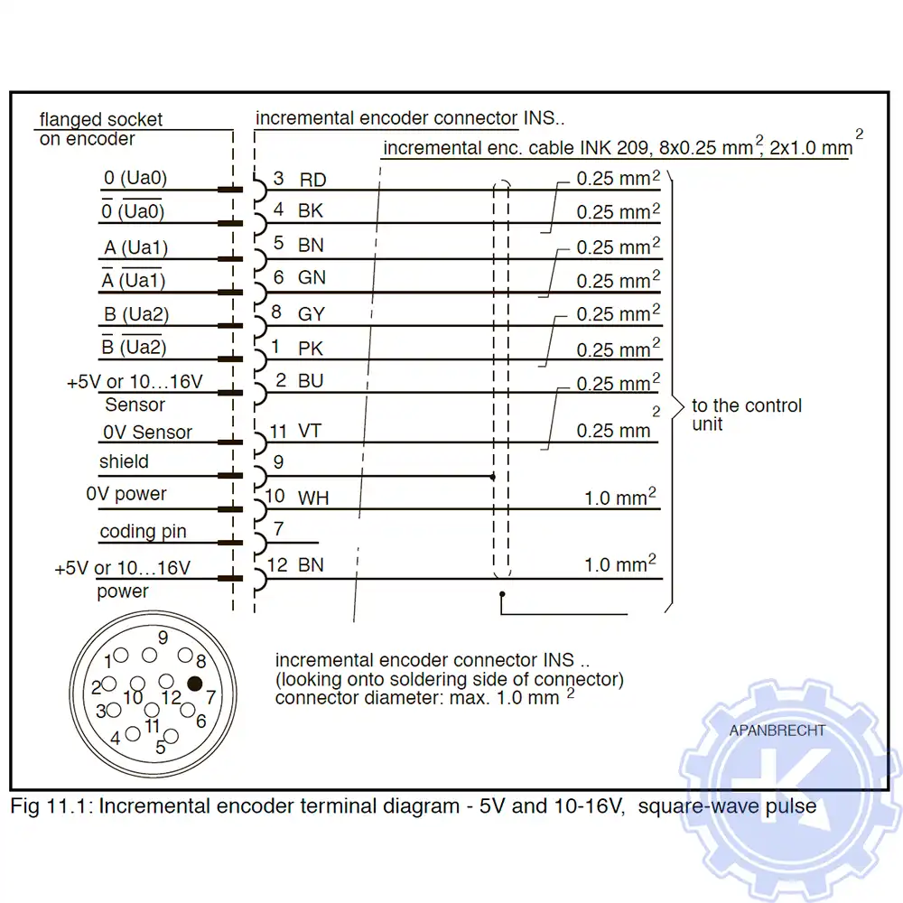 | Распиновка кодировщика INDRAMAT с импульсом прямоугольной волны. |