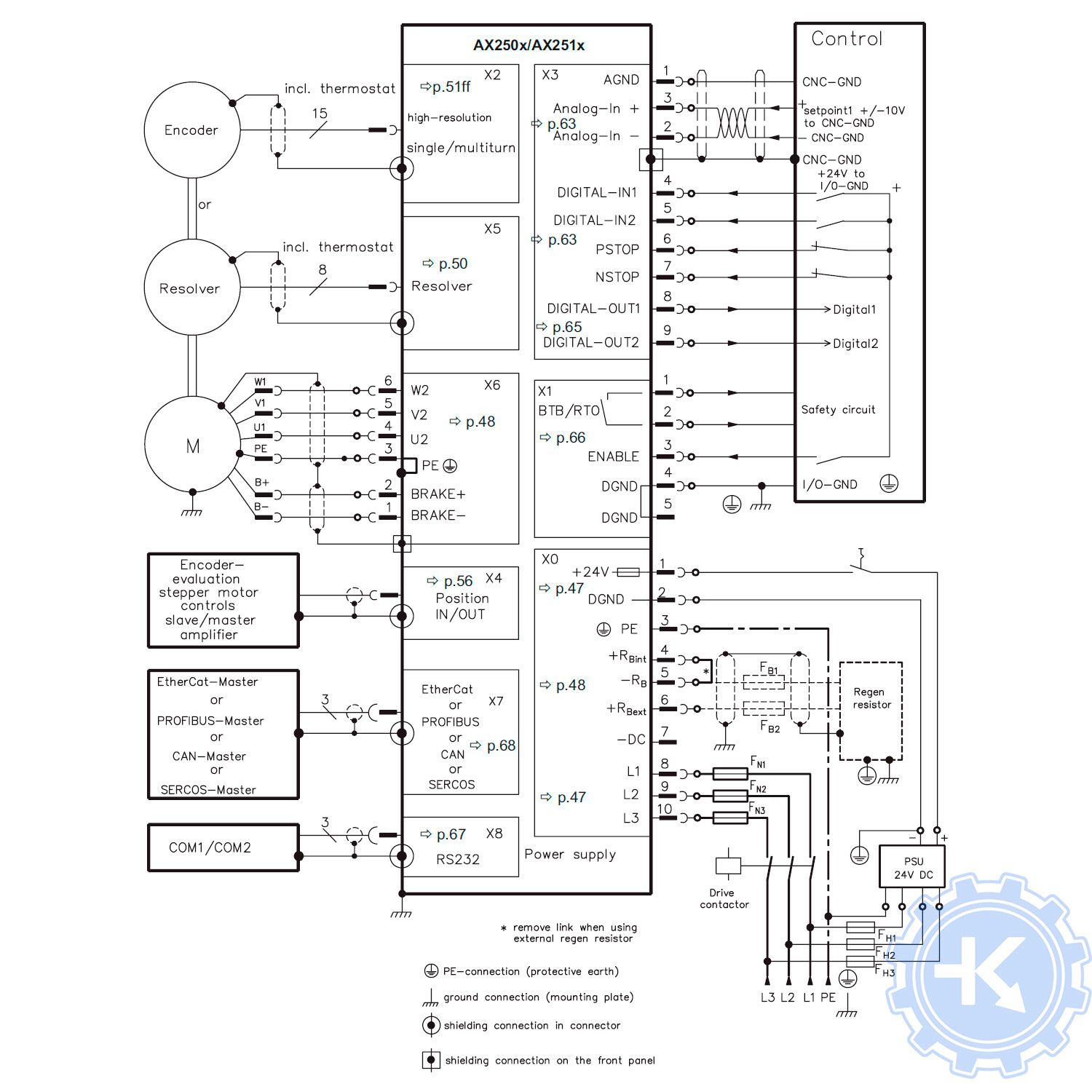 Схема подключения сервопривода Beckhoff AX2040/2070 |