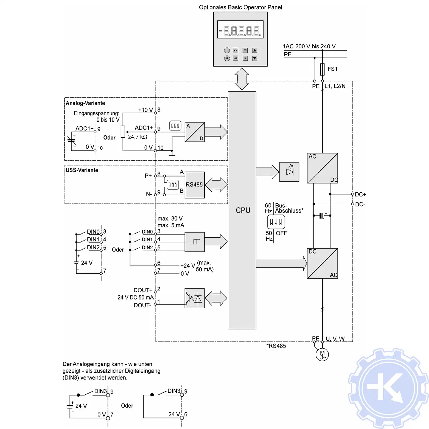 Блок схема подключения частотных преобразователей SINAMICS G110 |