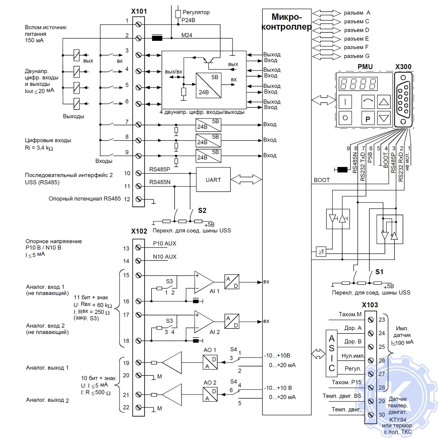 Общая схема соединений SIMOVERT MASTERDRIVES для типа G |